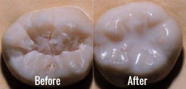 Dental sealants are thin, protective, plastic coatings that your dentist paints over your child's teeth. They are easy to apply, and they bond directly to the tooth and harden in place. The composite material gets into deep ridges and grooves on the surfaces and protects the enamel from sugars, acids, and plaque. Bad bacteria like to live and dwell in the grooves and depressions on the tooth, which is why these are prone to cavities.
